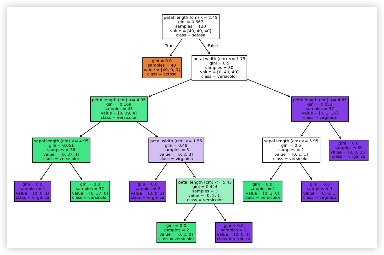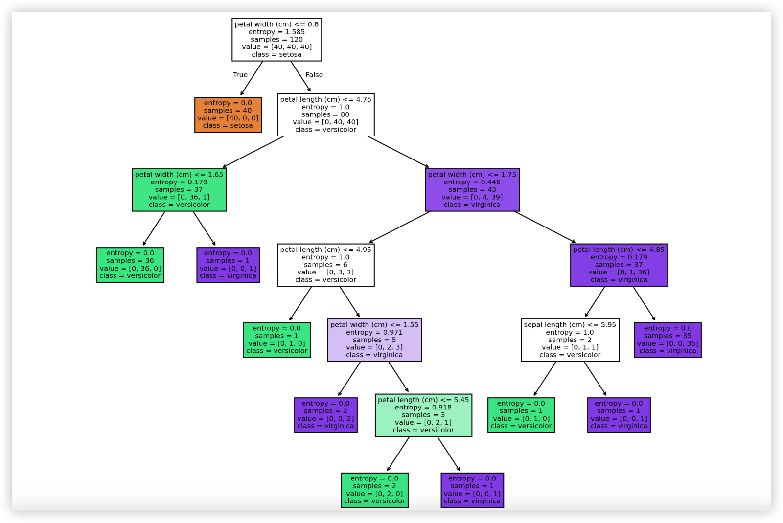 我们可以使用 scikit-learn 中tree模块的DecisionTreeClassifier和DecisionTreeRegressor来实现用于分类和回归的决策树,这里我们重点讨论用于解决分类问题的决策树模型,有兴趣的读者可以自行研究用于解决回归问题的决策树模型。