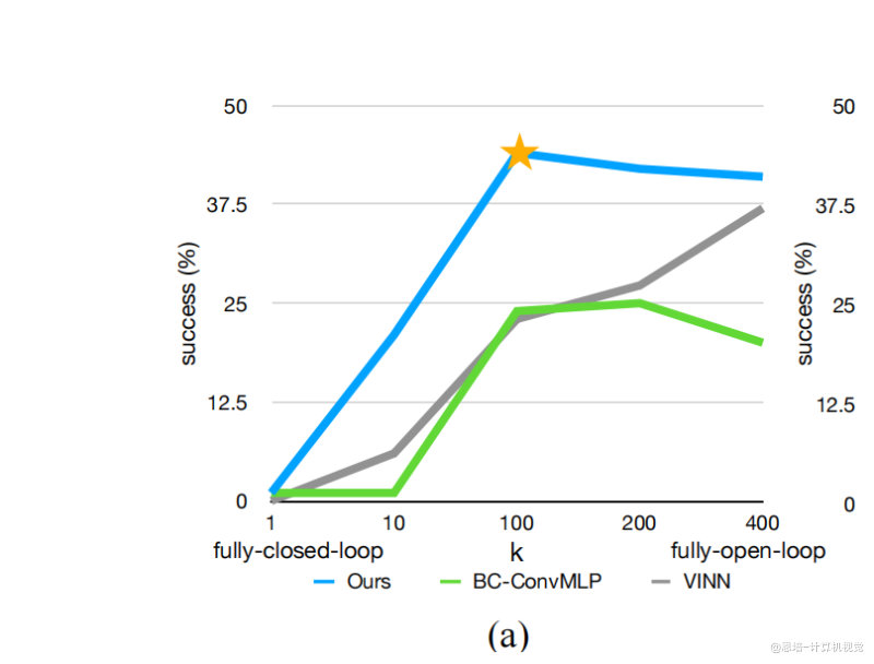 显著优势:相比现有方法(BeT、RT-1、VINN 等)有大幅性能提升