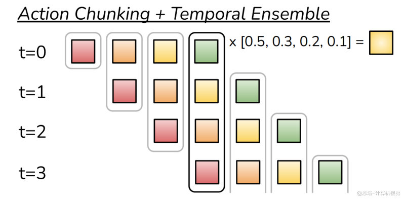 时序集成:通过重叠动作块的加权平均实现平滑执行