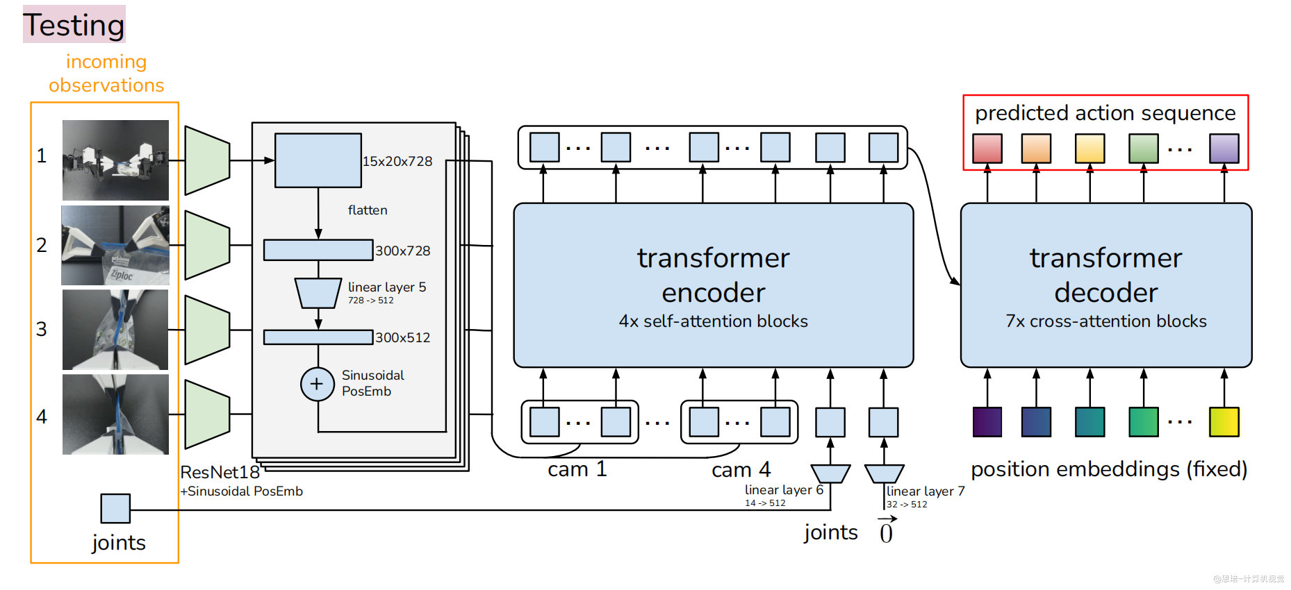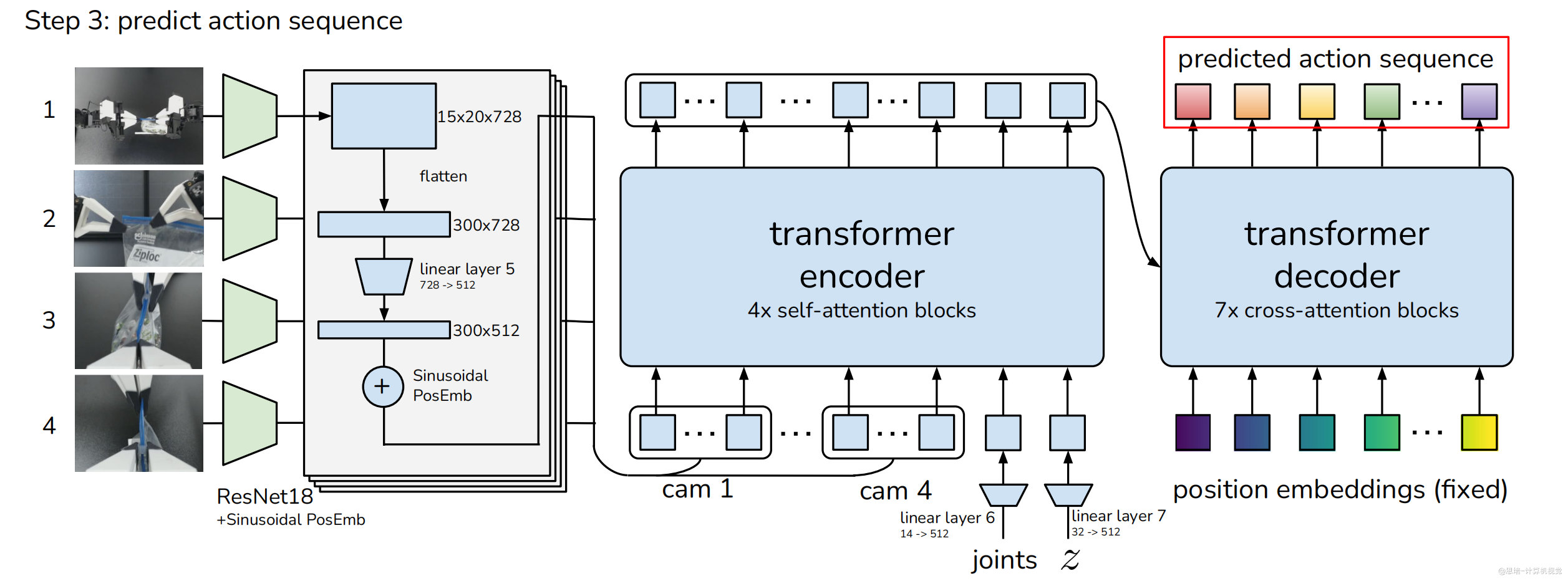方面 传统方法 Action Chunking (k\=10) 观察频率 每步观察 每 10 步观察 预测内容 (1,7) (10,7) 决策次数 10 次 1 次 误差累积 高(10 次机会出错) 低(1 次机会出错)