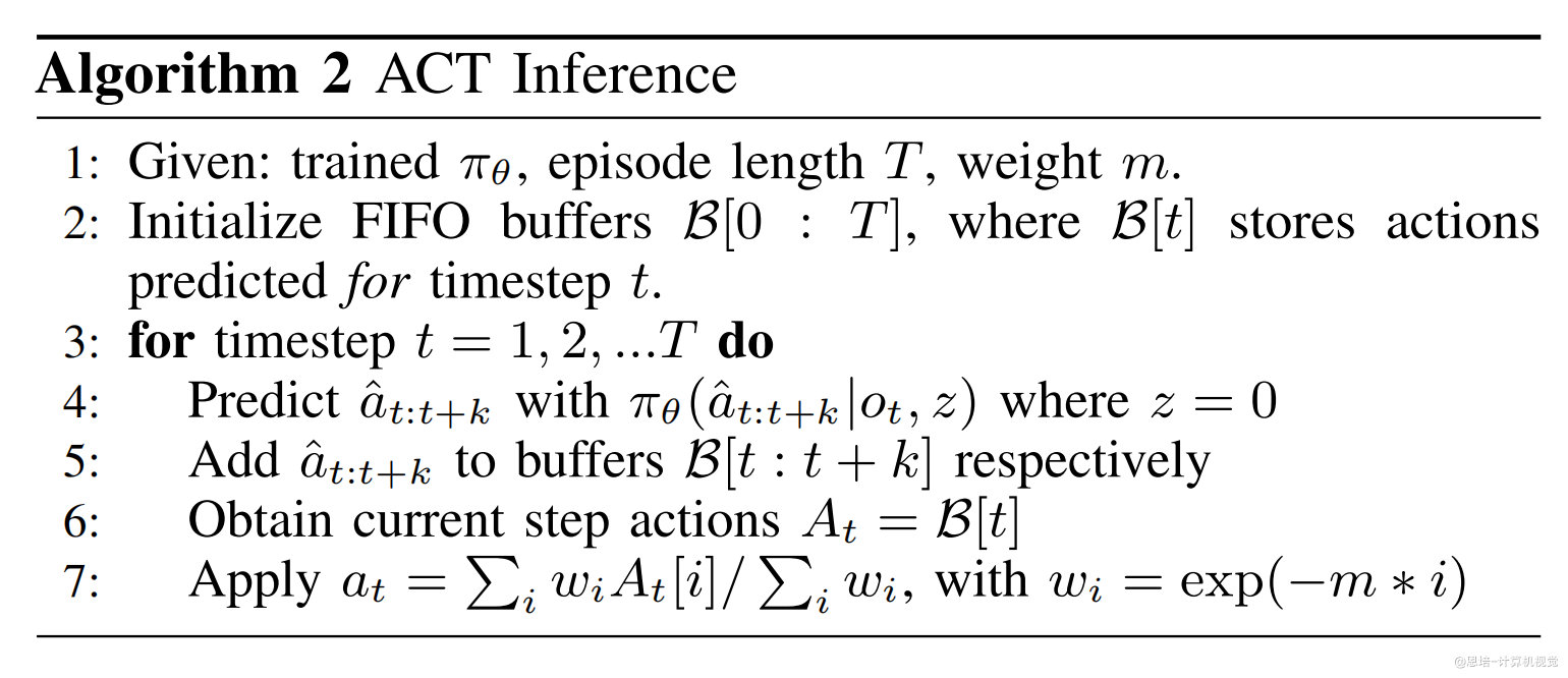 动作分块:预测未来 k 个时间步的动作序列,而非单步动作,有效减少复合误差